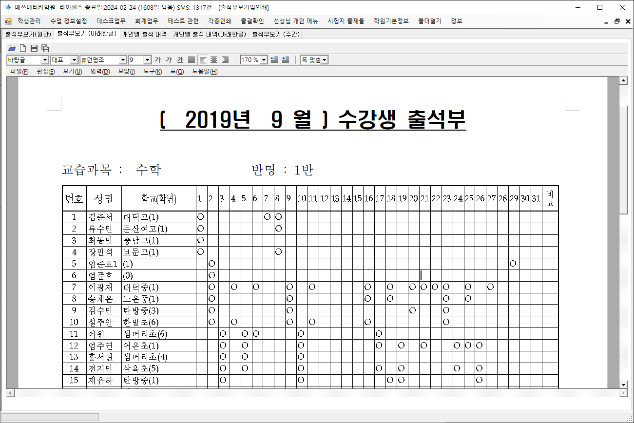 학생수가 수백명정도로 많은 경우에 사용합니다.